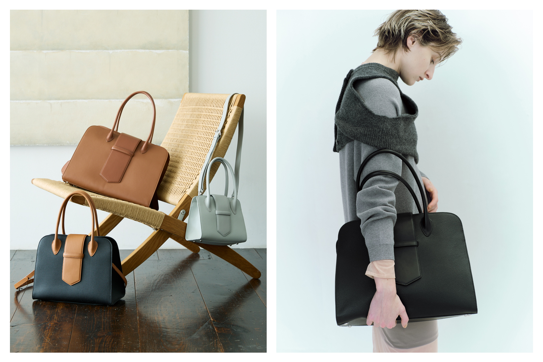 NO LA241046 PRICE ¥24,000 + Tax MATERIAL Interior Fabric×Cow Leather SIZE H20.0/W24.0/D8.0 COLOR Charcoal×Graige,Off White×Black -
