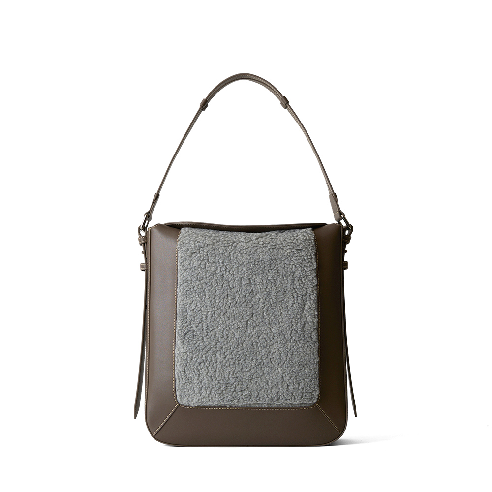 NO LA243025 PRICE ¥23,000 + Tax MATERIAL Imitation Vintge Sheep Boa×Cow Leather SIZE H15.0/W32.0/D10.0 COLOR Ecru,Gray -