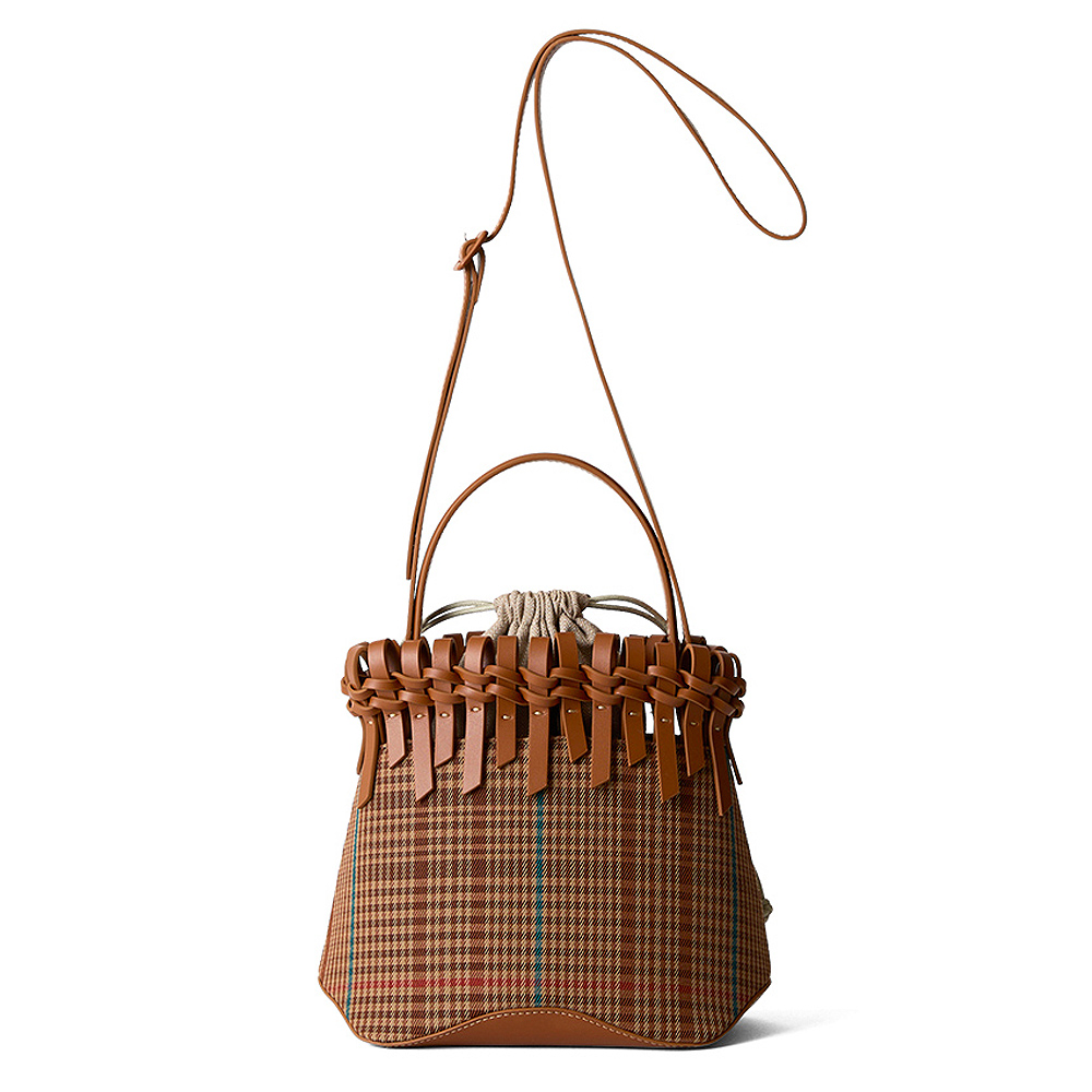 NO LA242019 PRICE ¥30,000 + Tax MATERIAL Plaid×Cow Leather SIZE H21.0/W22.0/D16.5 COLOR Camel,Dark Brown -