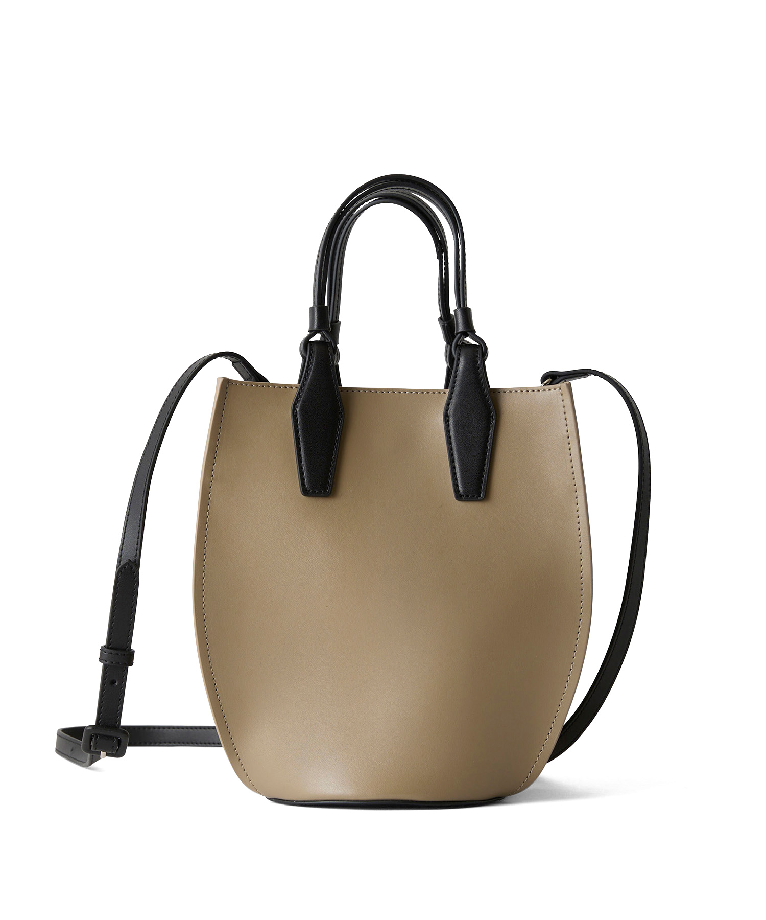 NO LA241051 PRICE ¥24,000 + Tax MATERIAL Cow Leather SIZE H17.5/W21.0/D11.5 COLOR Black,Aqua,Black×Camel,Greige×Chestnut -