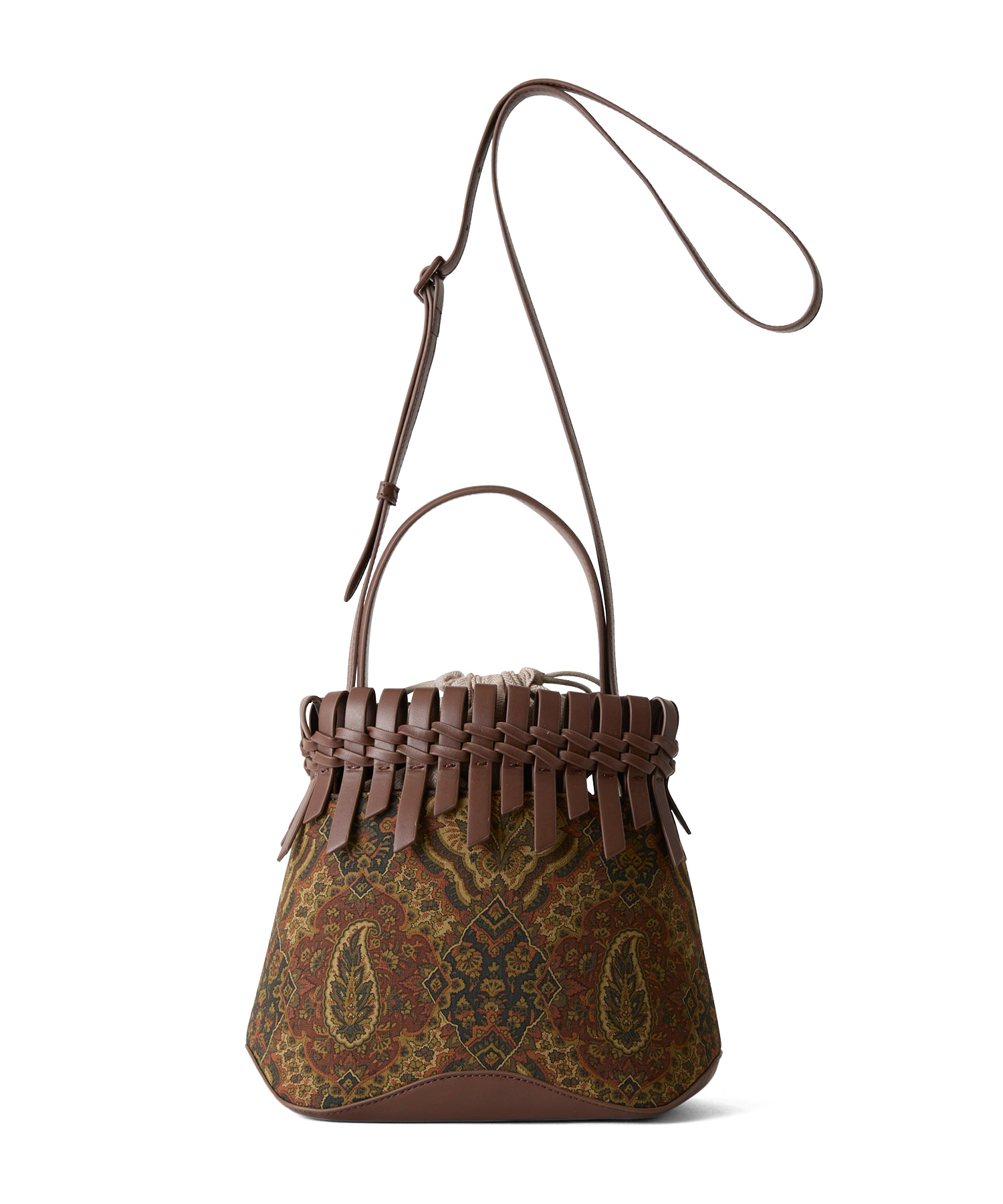 NO LA254019 PRICE ¥24,000 + Tax MATERIAL Paisley,PU SIZE H21.0/W22.0/D16.5 COLOR Ethnic Brown -